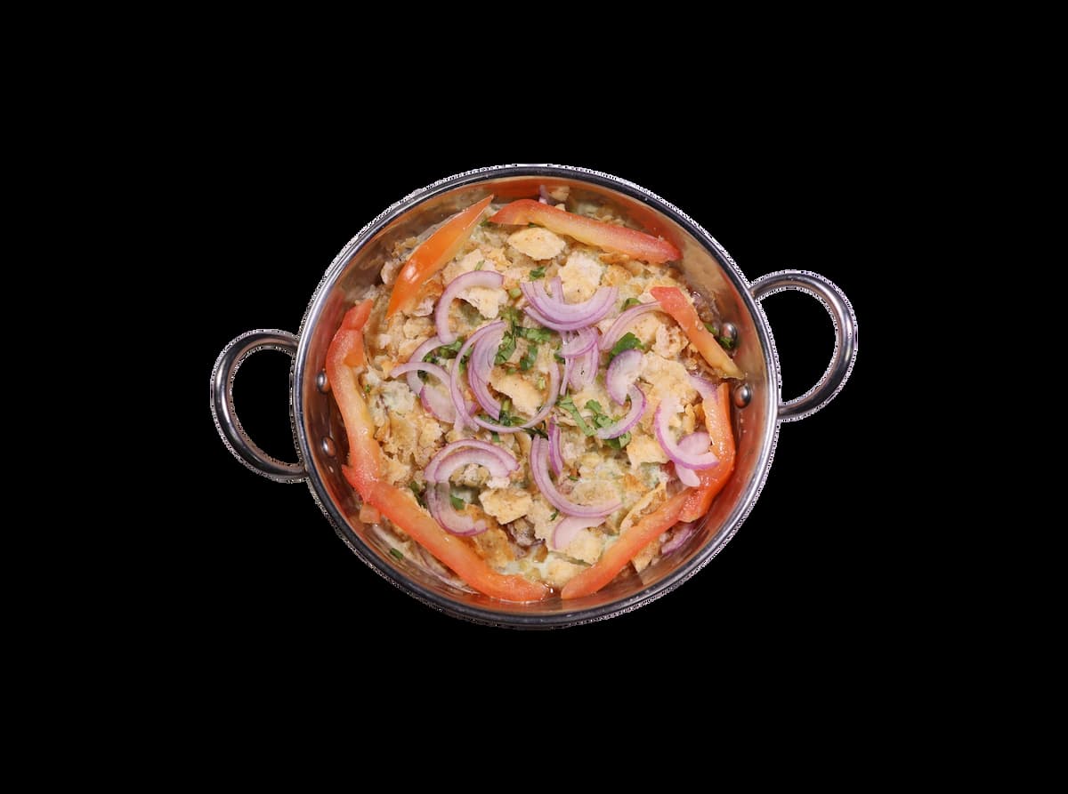 Indulge in our Channa Chaat, a colorful medley of tender potatoes, hearty chickpeas, juicy tomatoes, and zesty green chilies. Enhanced with special chaat masala and a drizzle of tangy chutney, every bite offers a sensational mix of exciting flavors.